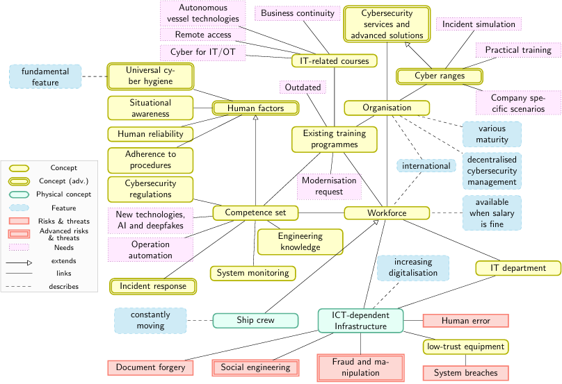 During the project, a scientific article on current maritime cybersecurity understanding was submitted to a Q1 journal in the SCOPUS or Web of Science database. The information highlighted in the study on the cybersecurity capabilities development needs of for maritime workforce is summarized in a visualization that shows the cybersecurity threat, competency, and training course topic components. Four additional articles were submitted for conference proceedings, three of which (on cybersecurity frameworks and regulations in maritime, the maritime cybersecurity threat landscape, and a serious game for cybersecurity training in maritime) have already been presented at conferences. Data from two surveys of maritime stakeholders, revealing their level of cybersecurity awareness, was published in the Zenodo repository.