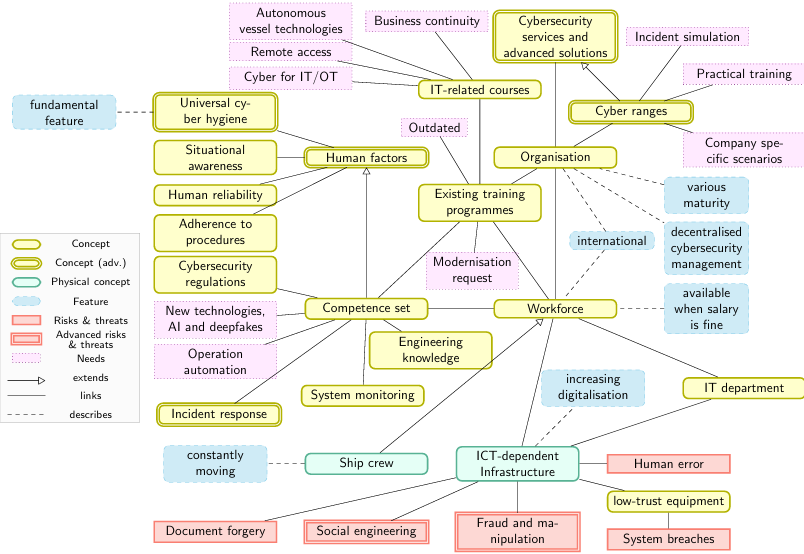 Projekta ietvaros tika sagatavota un iesniegta publikācija par pašreizējo kiberdrošības izpratni jūrniecības nozarē, raksts iesniegts zinātniskajā žurnālā, kas saskaņā ar Scopus vai Web of Science datubāzēm atbilst Q1 kvartilei. Pētījumā iegūtie dati par jūrniecībā strādājošo kiberdrošības prasmju attīstību ir apkopoti vizualizācijā, kas atspoguļo galvenos apdraudējumus, nepieciešamās kompetences un apmācību tēmas.